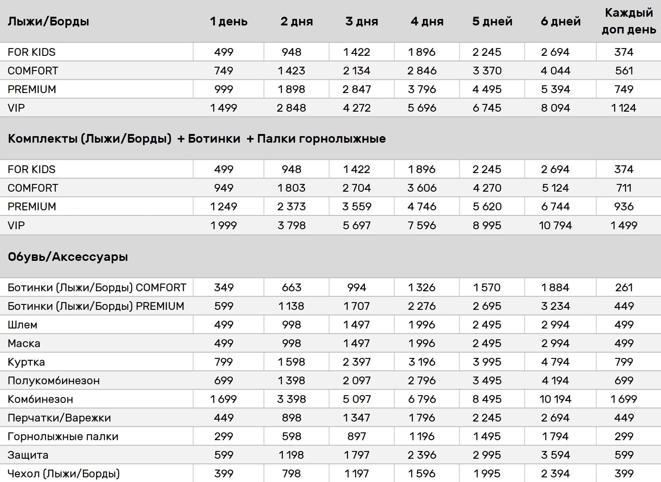 - Возможность проката горнолыжного инвентаря на разный срок — от 1 дня до всего сезона.